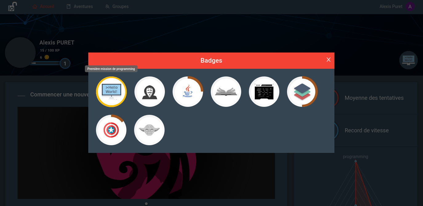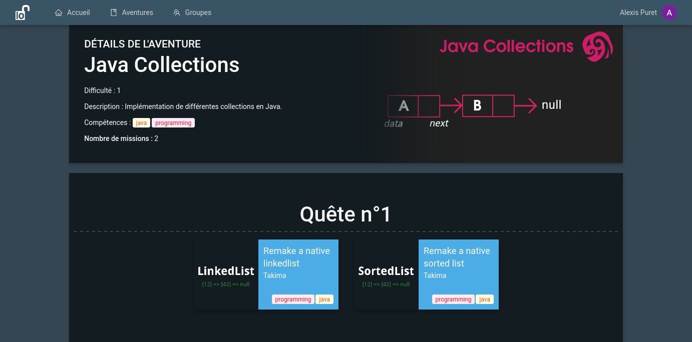 Le portail Deadlock propose une ludification des exercices. Cette mise en scène (missions, aventures, quêtes, points à gagner, etc …) permet notamment de guider en autonomie l’étudiant lorsqu’il doit réaliser une série d’exercices sur un temps long. Dans le cadre d’un usage en TD, c’est l’enseignant qui assure cette animation et l’étudiant est directement mené vers l’exercice à faire à un moment donné.