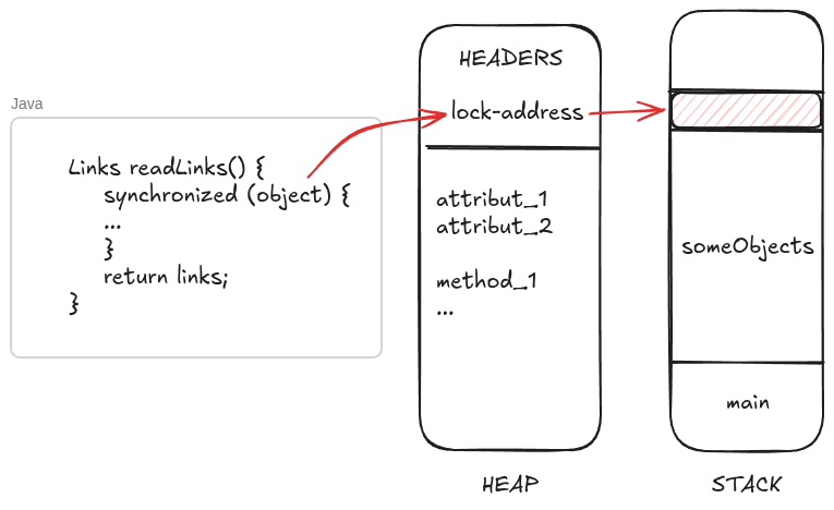Pour faire simple, lorsque l'on utilise un synchronized sur un objet pour du code multithreadé, la JVM vient écrire un Lock Record dans la stack et écrit l'adresse de ce Lock Record dans les headers de l'objet synchronized. Or on a dit que la stack des Virtual Threads peut être déplacée dans la Heap lors d'un I/O, si on fait là notre objet synchronisé va être corrompu... C'est ce qu'on appelle du pinning, le worker est bloqué avec un VT à cause du synchronized .