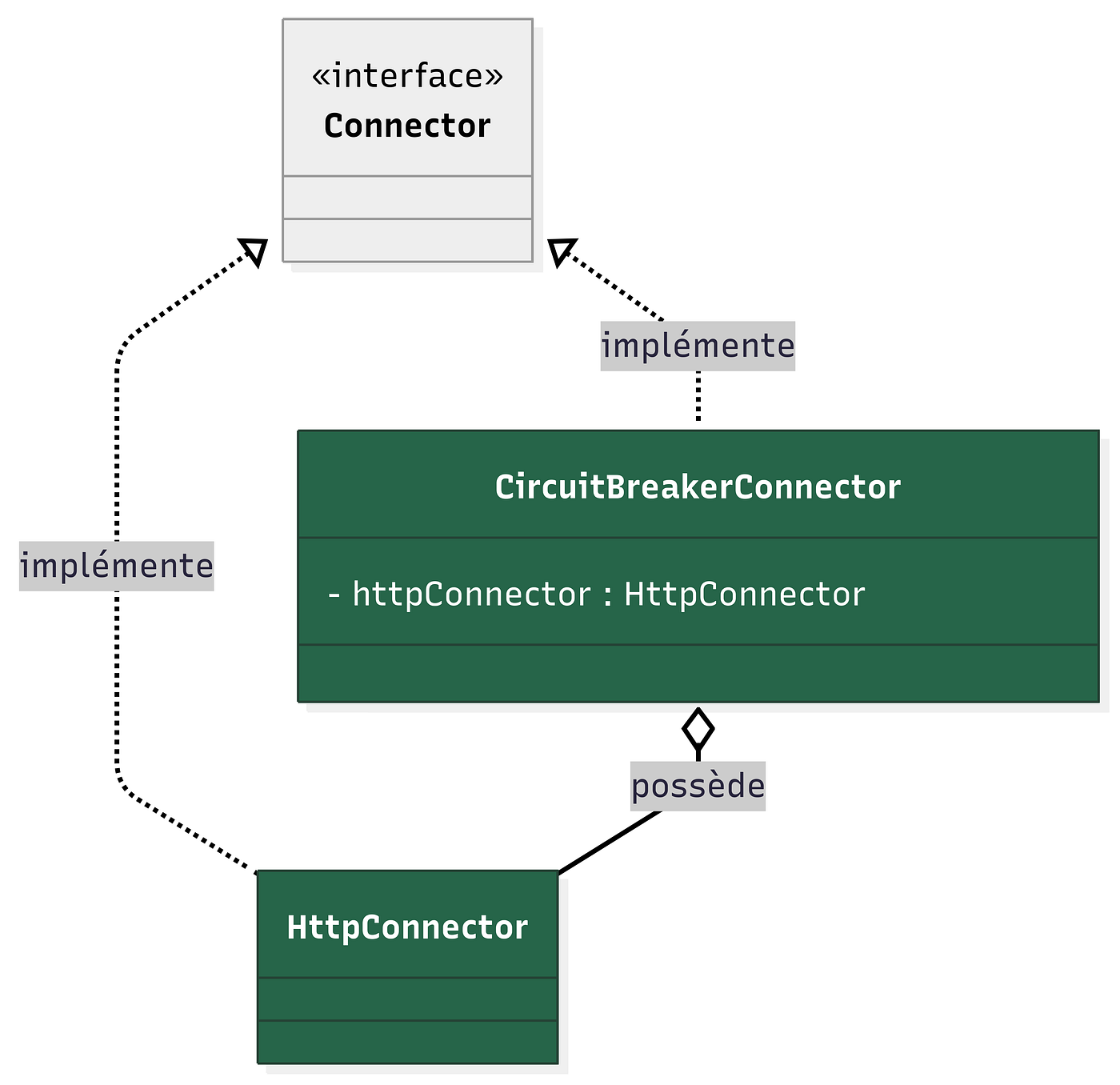 }En utilisant Opossum, nous allons créer un CircuitBreakerConnector capable de gérer toutes les implémentations de l’interface Connector :