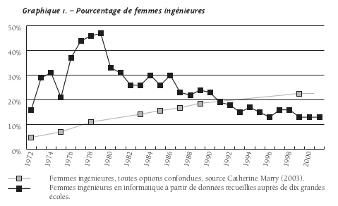 Il est important de rappeler un fait à propos des femmes dans l’informatique : elles étaient majoritaires jusqu’au début des années 1980 ; et depuis la proportion de femmes n'a fait que diminuer.